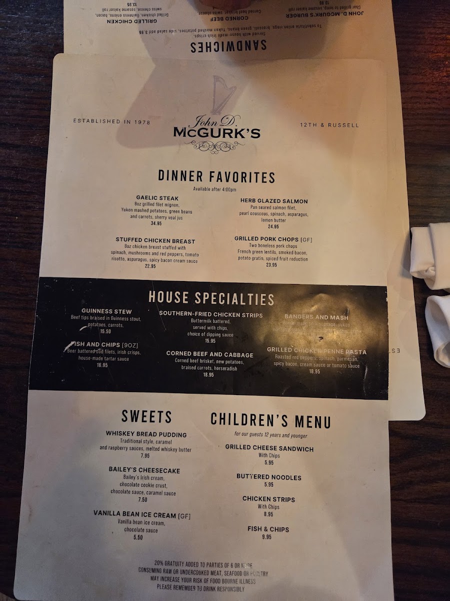 The true charm of John D. McGurk's lies in its ability to cater to all moods—whether you're looking for a lively gathering spot with friends or a cozy corner for a casual meal. With delicious offerings, an inviting atmosphere, and a reputation for being one of the best Irish pubs in St. Louis, it's clear why this place continuously garners rave reviews. Don't miss the chance to experience it for yourself!